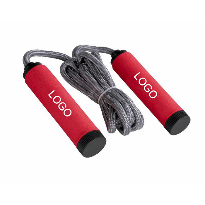 This jump rope or skip rope comes with a about 102'' long cotton rope and a 5 7/16'' sponge handle. Imprint your company name and logo on it before handing it out to all of your customers. Various shape, design, size, color, material and packaging are welcome.